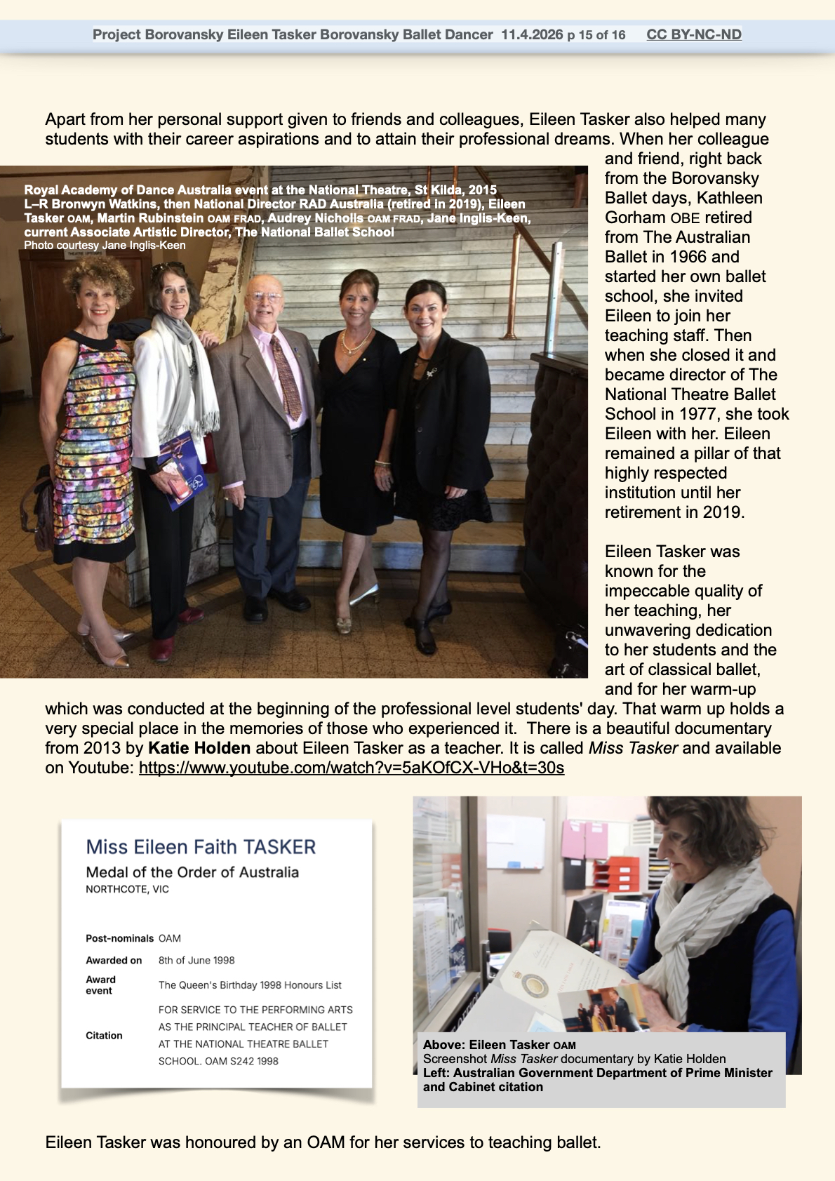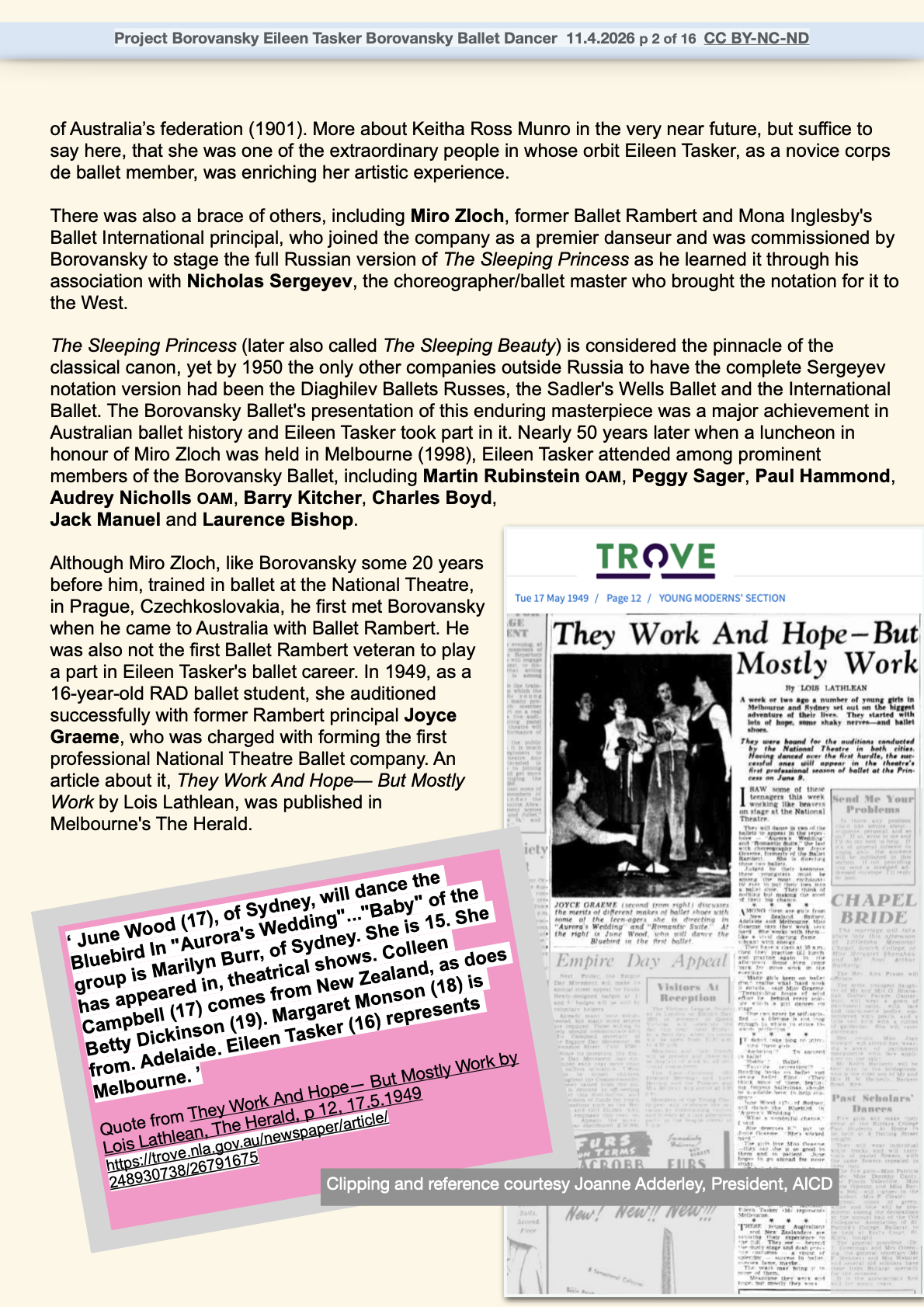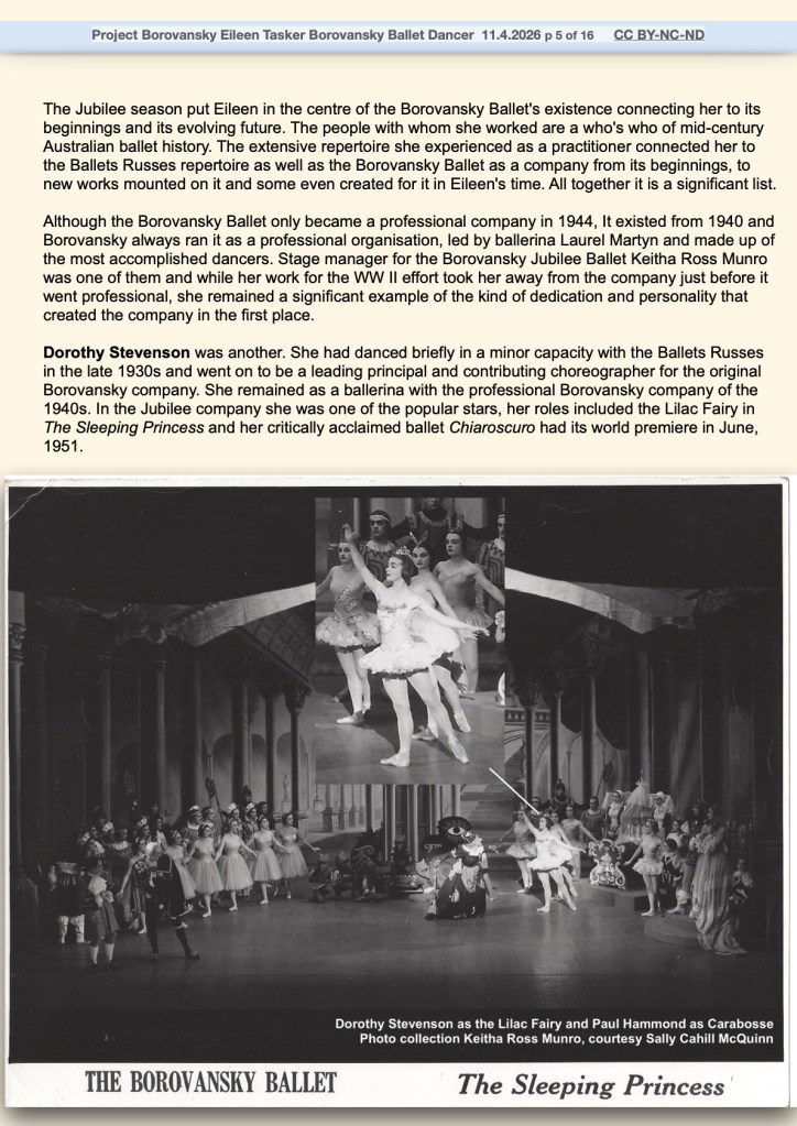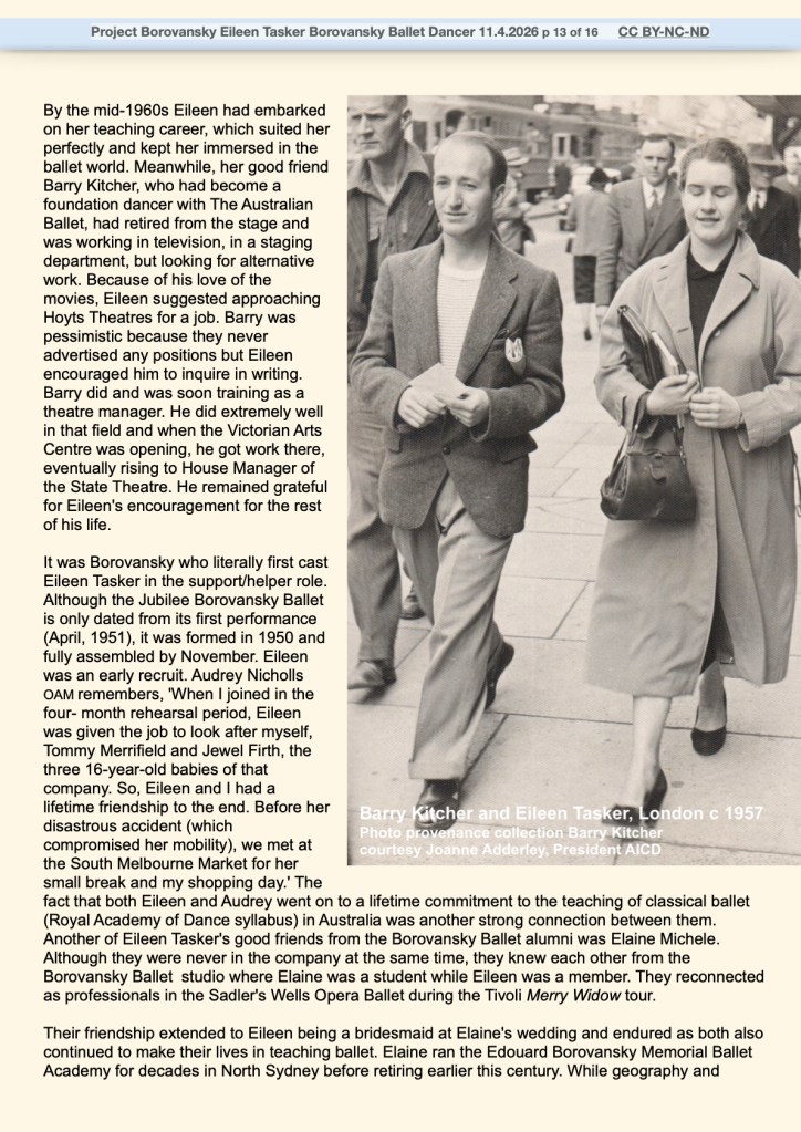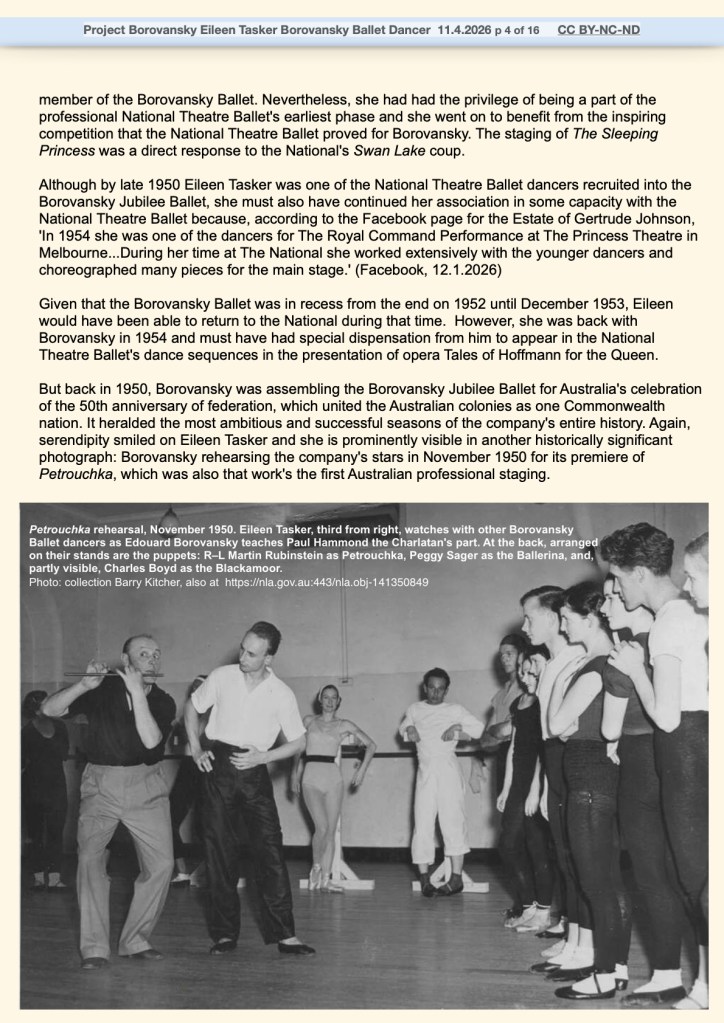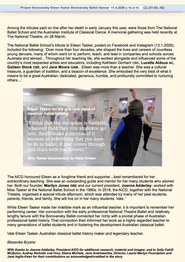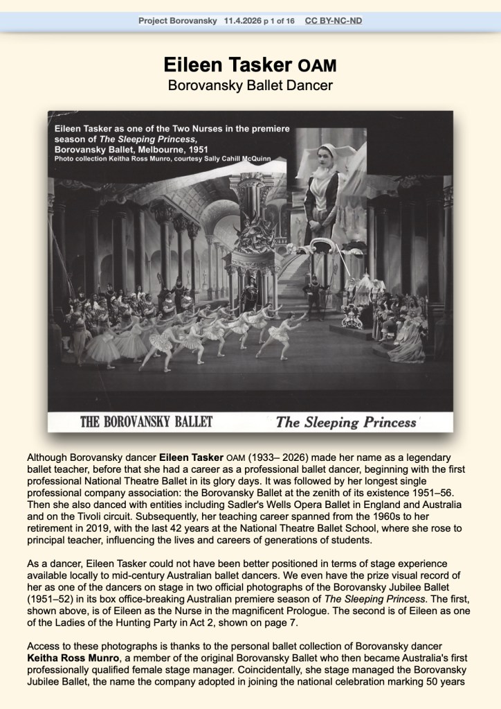 April 14, 2026 by blazenkabrysha Eileen Tasker Borovansky Ballet dancer By Blazenka Brysha CC BY-NC-ND for Project Borovansky link to Katie Holden’s film Miss Tasker Share this: Share on Facebook (Opens in new window) Facebook Share on X (Opens in new window) X Share on LinkedIn (Opens in new window) LinkedIn Email a link to a friend (Opens in new window) Email Share on Pinterest (Opens in new window) Pinterest Print (Opens in new window) Print Like Loading... Related