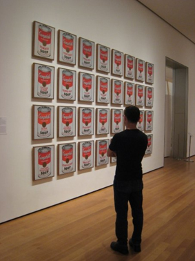 The photograph of you to be used with this interview, you say ’emphasises your aesthetic.’ Tell me a little about how you relate to that photograph, which shows your back and shows you in front of the Warhol famous soup can work at the Museum of Modern Art in New York.